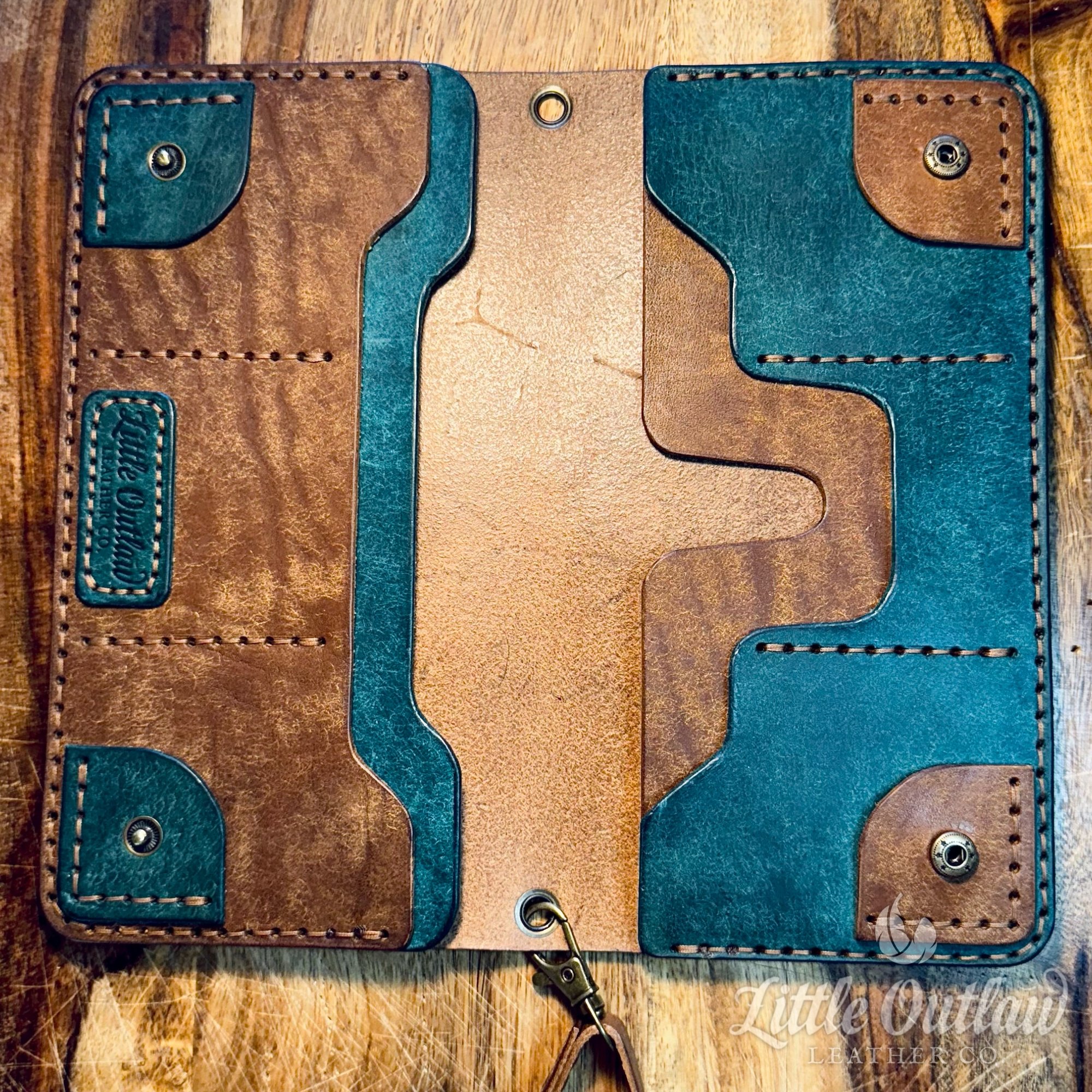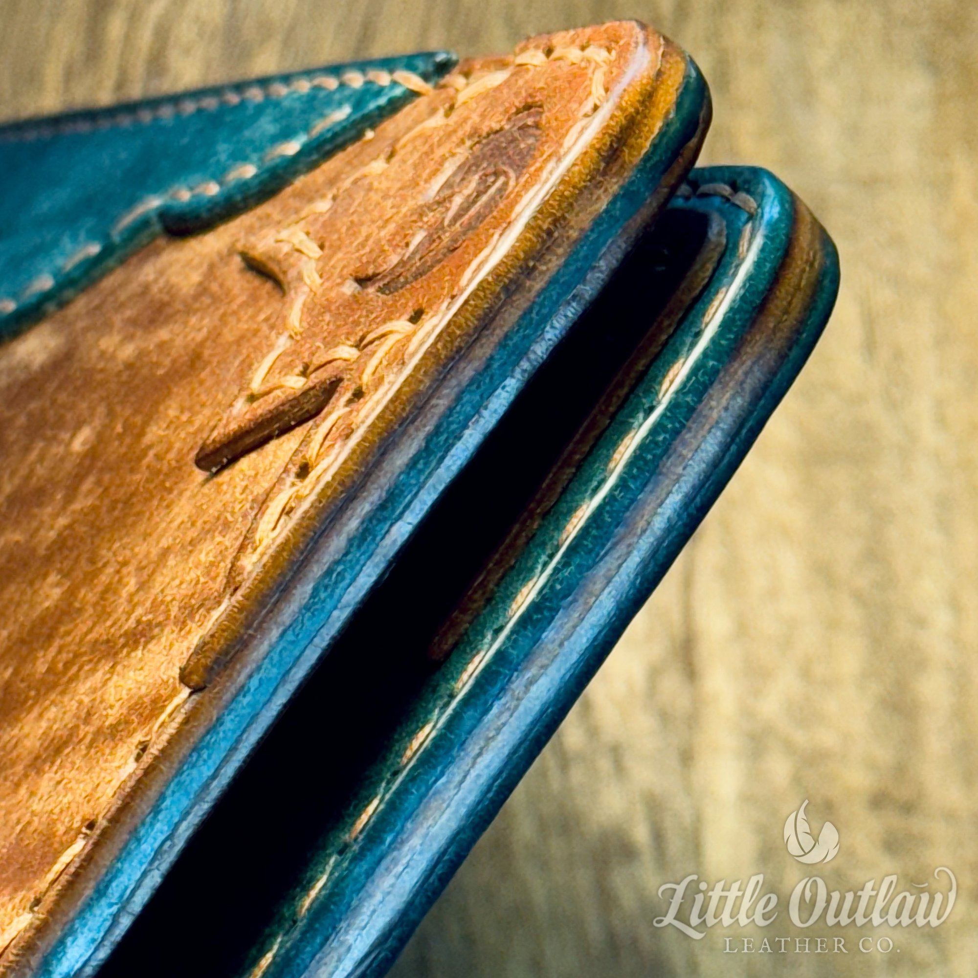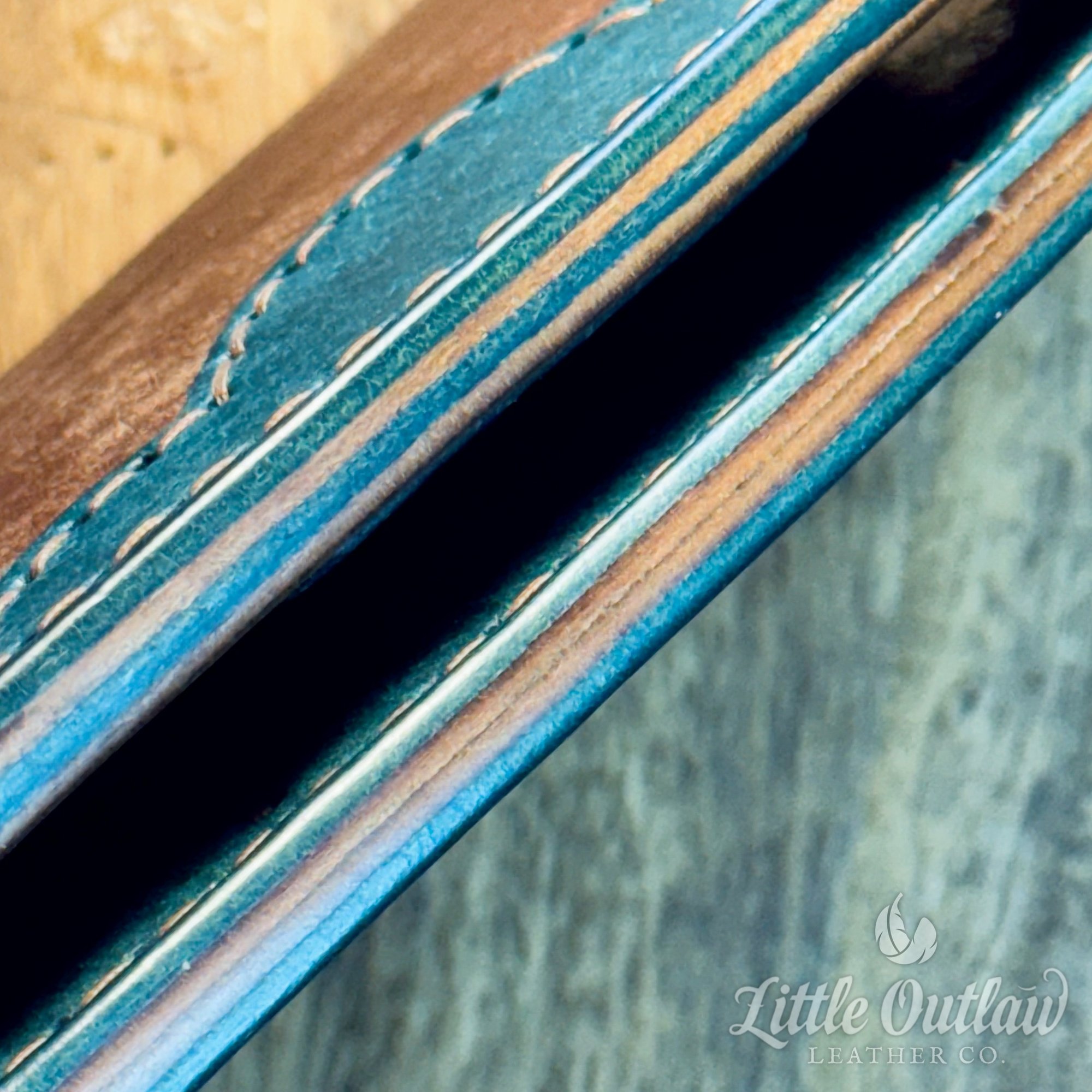 Teal Green & Chestnut Leather Clutch – Handcrafted by Little Outlaw Leather Co.