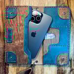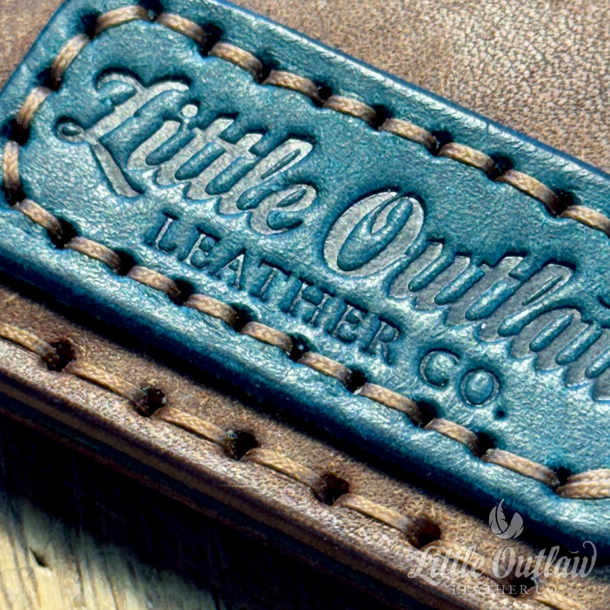 Built for bold hearts and busy hands, this 8-inch handcrafted clutch is made from rich Italian Pueblo leather — known for its rugged texture, matte finish, and graceful aging. The warm chestnut body is accented with a striking teal green overlay, all stitched with true Western grit.